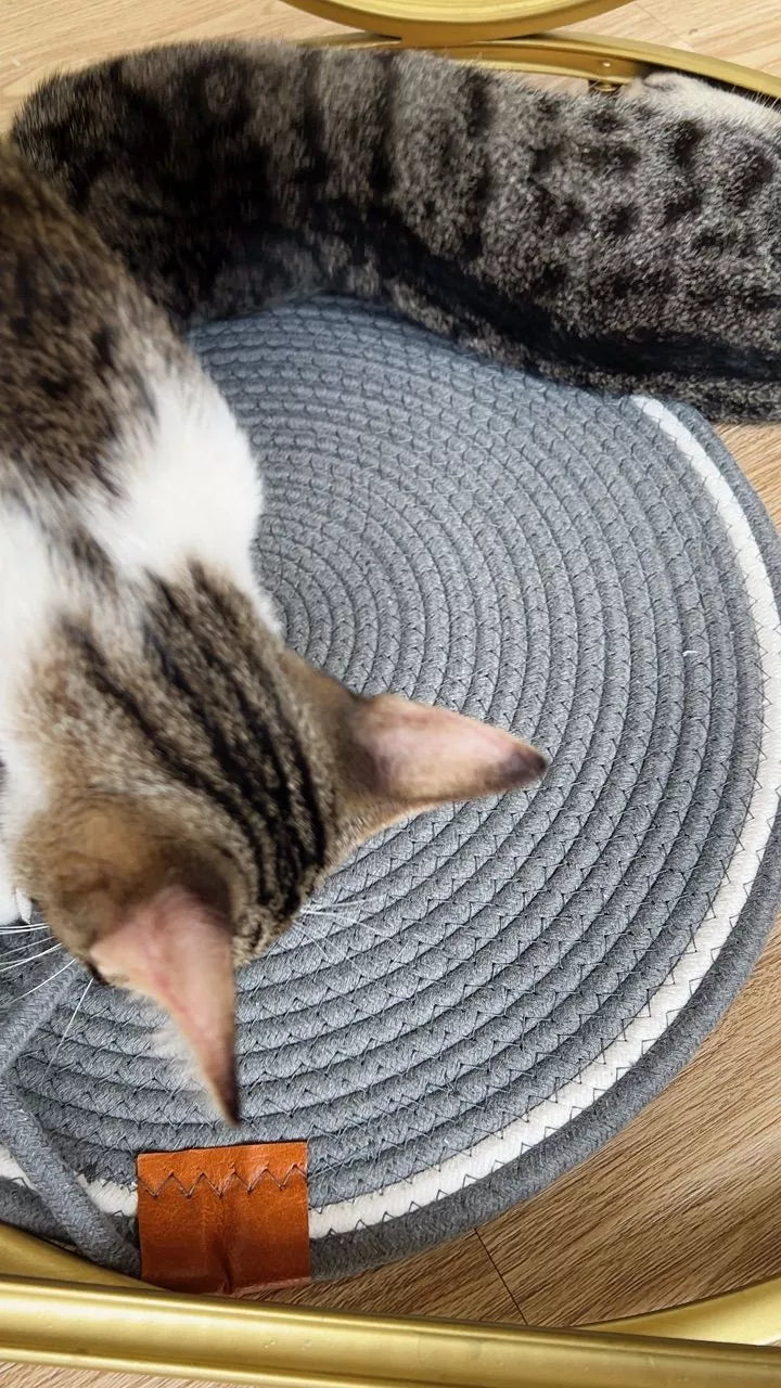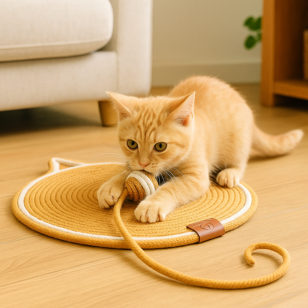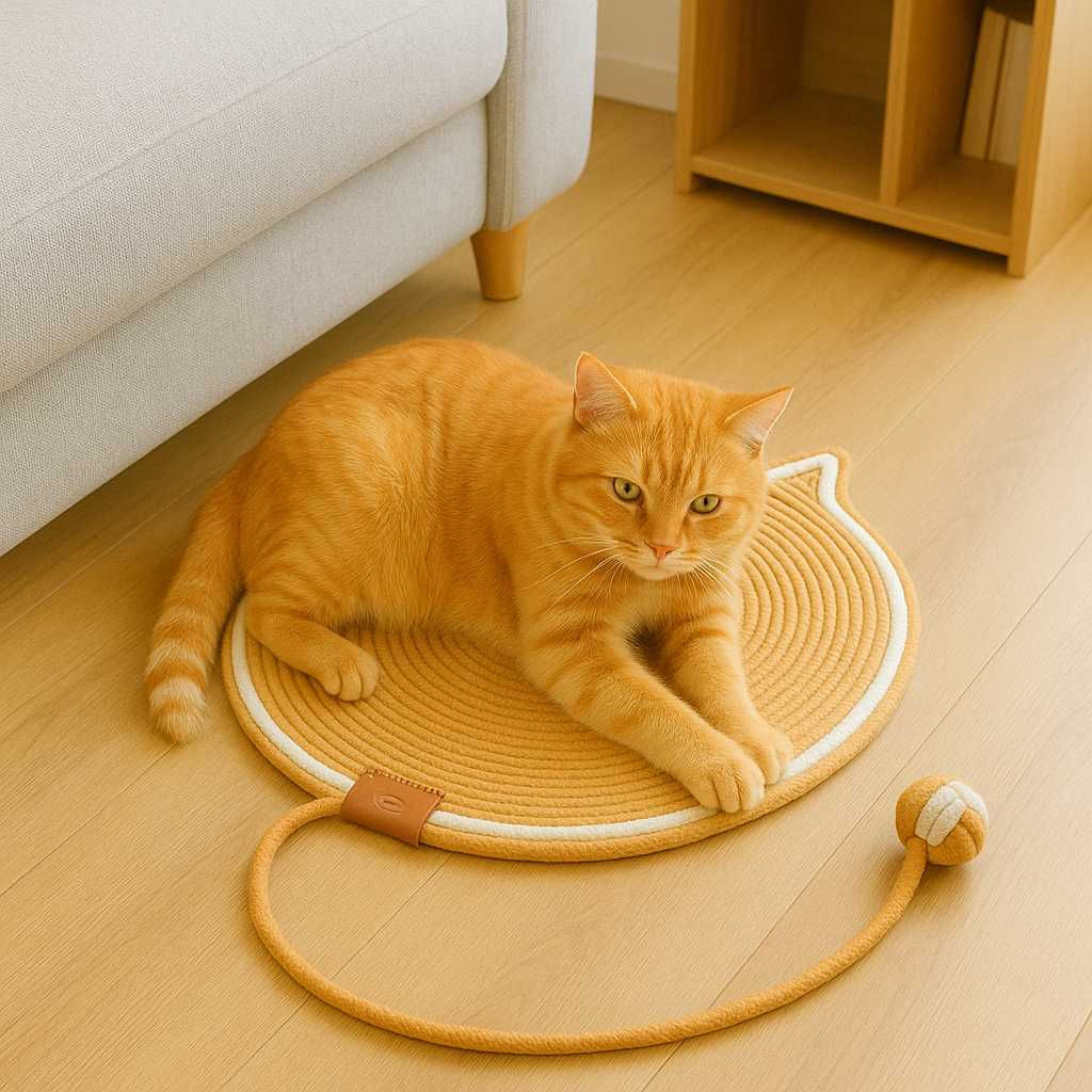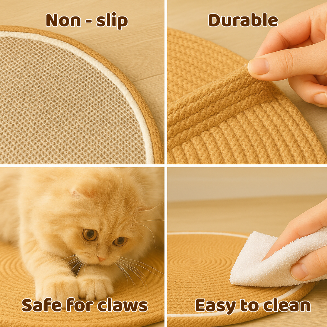 🌿 The surface of the mat is made from durable, tightly woven natural fibers, strong enough to withstand daily scratching. Its texture mimics the feeling of tree bark 🌳, which is closest to what cats naturally seek in the wild. This makes every scratch not only enjoyable but also instinctively satisfying, helping to keep their claws healthy and sharp.