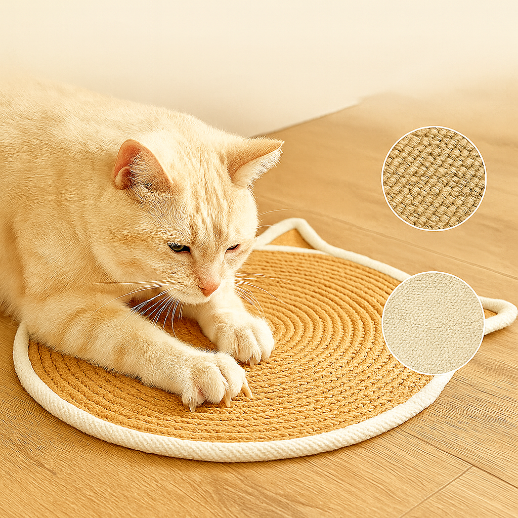 This product is made from natural sisal / coarse cotton fabric – (durable fibers, eco-friendly 🌱) that create a strong, sturdy surface while remaining safe for pets. The material is non-toxic ❌🧪, hypoallergenic 🤧, and specially designed to reduce debris when cats scratch 🐾. That means you can have complete peace of mind about both your cat’s health and the cleanliness of your home.