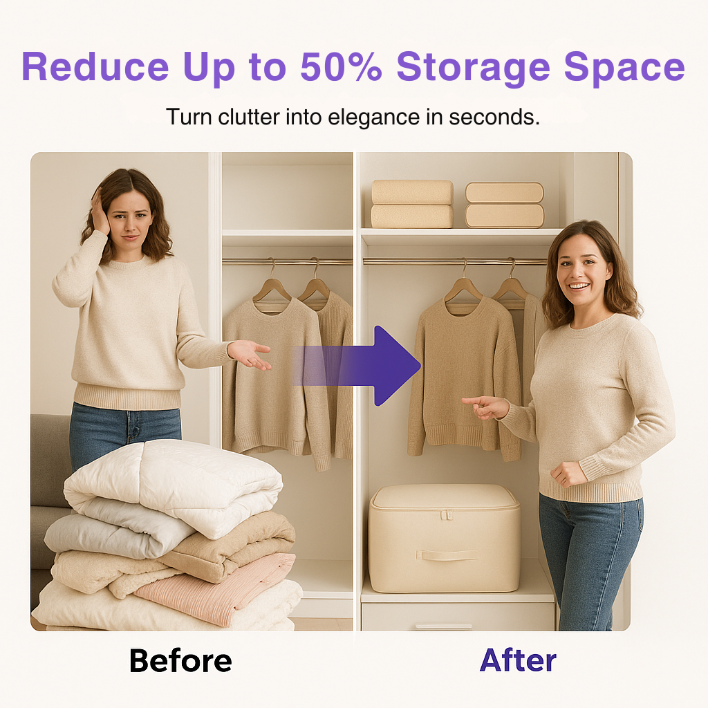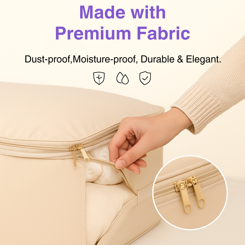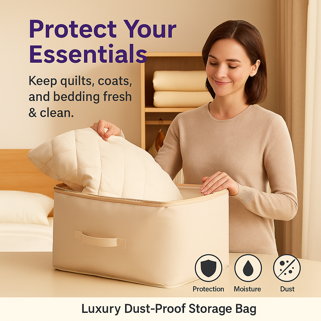 Experience a new way to organize your home. Our Luxury Dust-Proof Storage Bag turns piles of bulky bedding and clothes into a sleek, compact solution. Keep your wardrobe elegant, maximize your storage space, and protect your essentials from dust and moisture.